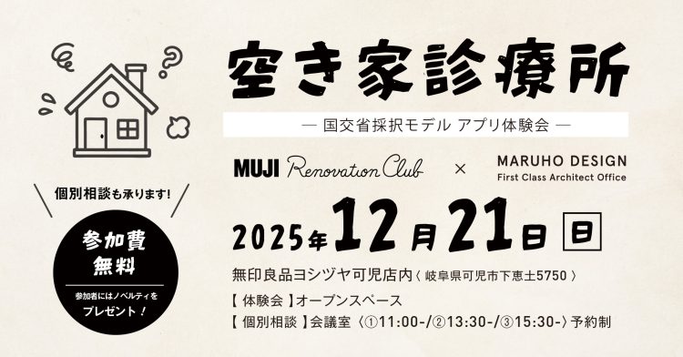 MUJI Renovation Club メンバーであり、岐阜県空き家相談員でもあるマルホデザイン一級建築士事務所 が、空き家の状況に合わせた活用方法や、今やるべきことを分かりやすくご紹介します。